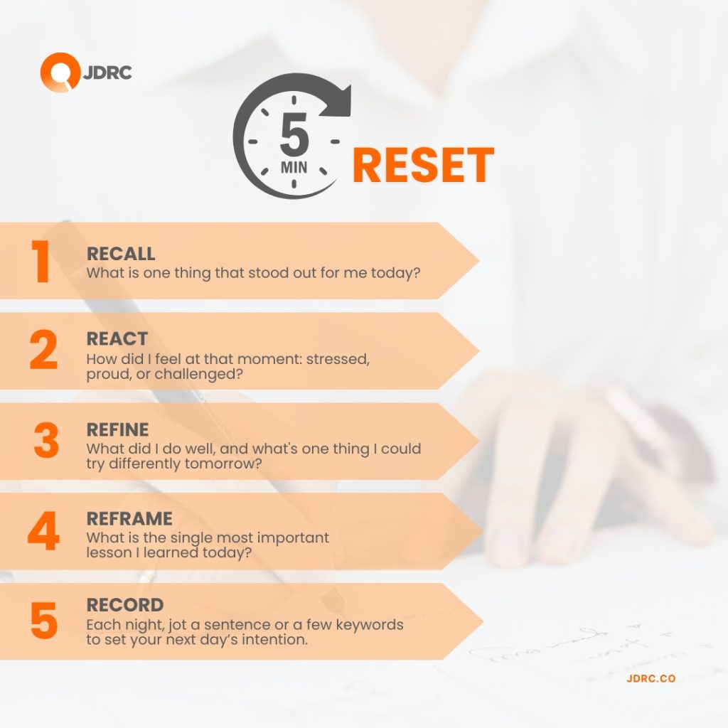 At JDRC, reflection isn’t just something we advocate; it’s how we work. Every morning, we briefly share what we achieved yesterday and what we’re focused on today. This ritual keeps us aligned, accountable, and connected. It reminds us all that growth comes from thoughtful awareness-from learning through reflection, not just repetition.
